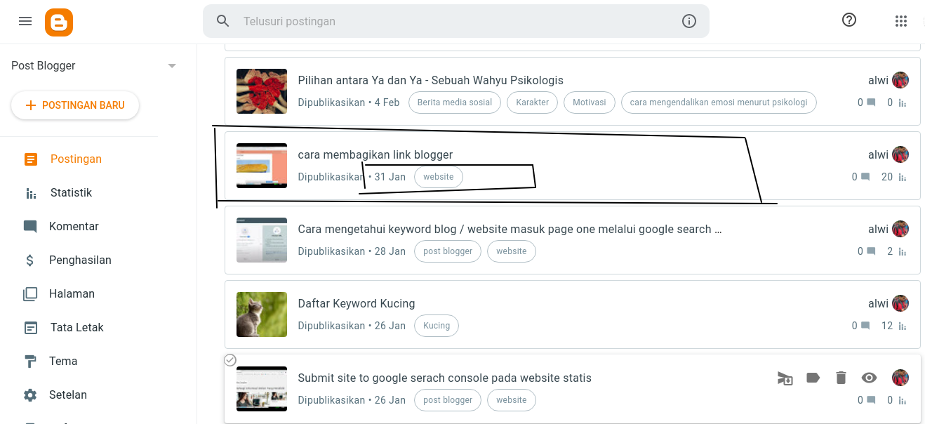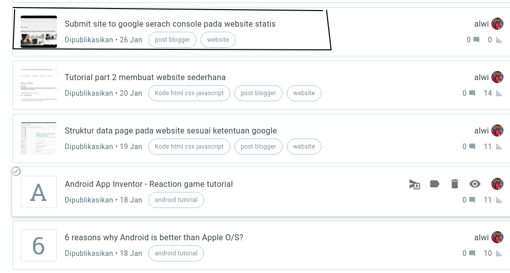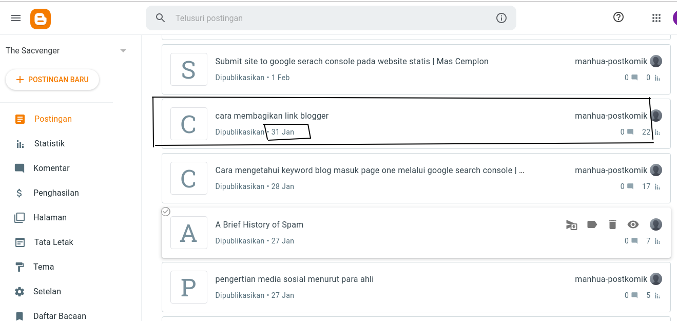 dalam postingan ada yang seo dan tidak seo. Maksudnya kalau kita ngeblog dan membuat postingan yang melanggar kaidah seo itu akan berdampak pada postingan terbaru misalnya lama nya terindex bahkan postingan yang baru ga akan terindex karena terganjal pada postingan yang lama alias tertahan. mengenai ini penyebab nya bisa gw sebutkan dan ini yang gw lakukan pada saat penelitian