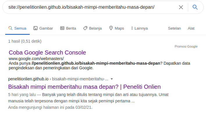 Dari ketiga gambar penelitian tersebut memiliki template berbeda serta kecepatan terindex google nya juga berbeda ini adalah contoh mudah dan jika kalian penasaran maka bisa melakukan uji coba sendiri dengan cara :